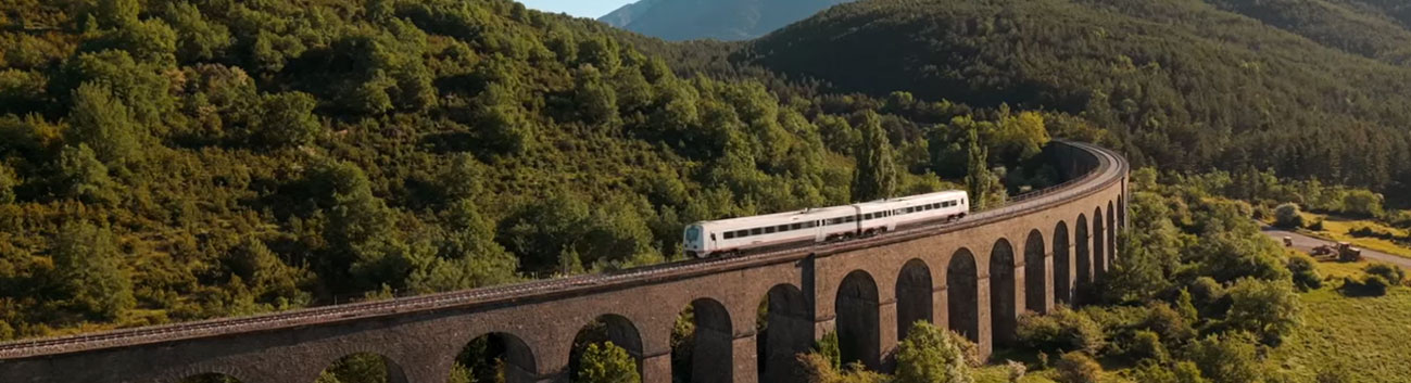 La línea internacional Zaragoza – Canfranc – Pau constituye uno de los corredores ferroviarios transpirenaicos más relevantes del suroeste europeo. Fue inaugurada en 1928, coincidiendo con la apertura de la Estación Internacional de Canfranc, concebida como gran nodo de intercambio ferroviario entre España y Francia. Su construcción supuso un desafío técnico de primer orden, con obras singulares como el túnel de Somport (7,8 km) y numerosos viaductos y túneles que permiten salvar la orografía de los Pirineos centrales.